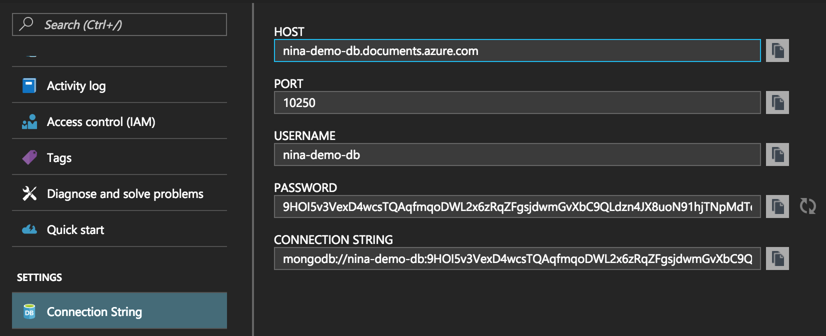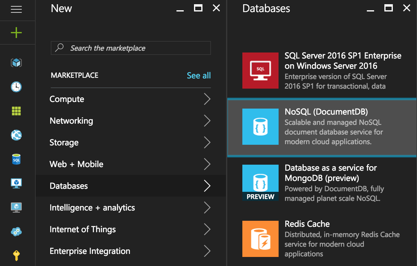 tab on the left hand navigation bar (the menu item with the green grid icon), and then select the DocumentDB resource you created: