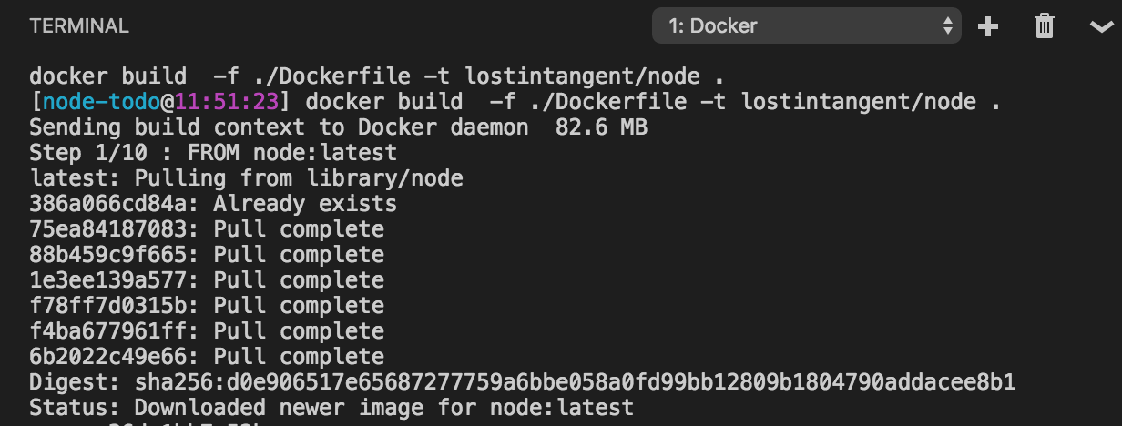 that we just generated/edited, and then give a tag to the image which includes your DockerHub username (e.g. lostintangent/node