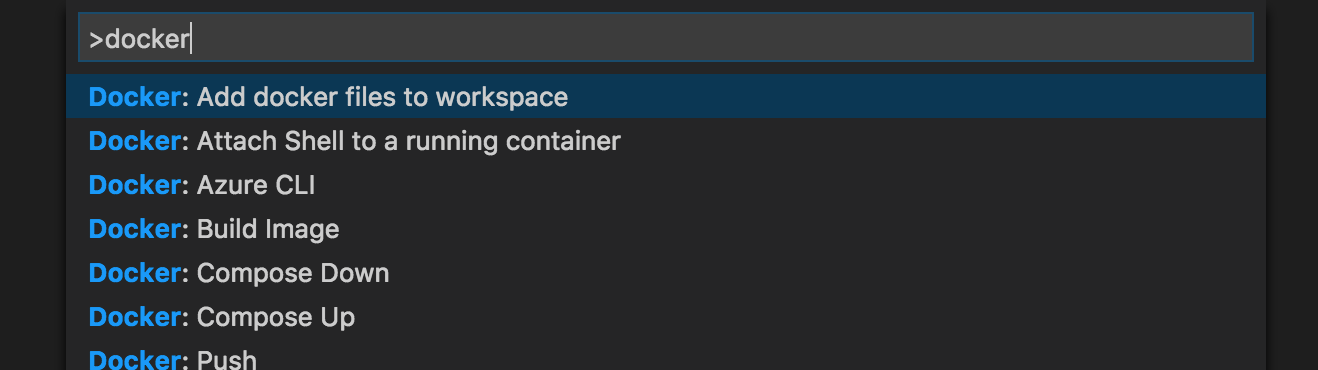 At this point, to make this image easily acquirable for deployments, we just need to push it to DockerHub. To do this, bring up the command palette, enter dockerpush
