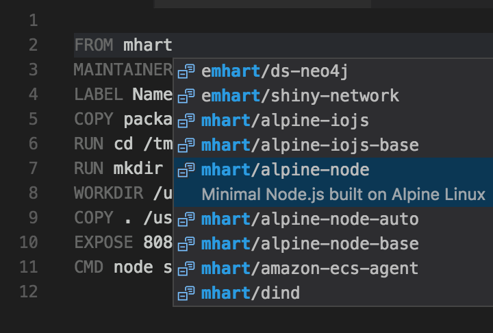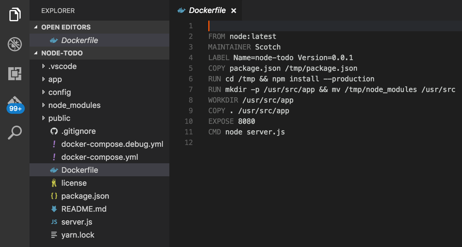 files, which makes authoring your Docker assets a lot simpler. For example, open up the Dockerfile