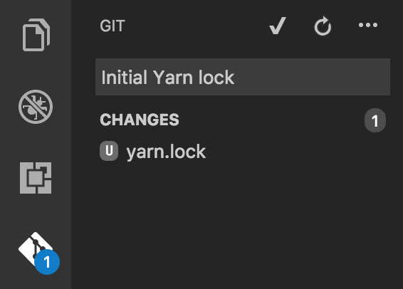 It is encouraged that this file be checked into source control, and to do this, you can easily switch to the integrated Git tab in VS Code (the one with the Git logo), and notice the newly added file. You can type in a commit message, and type CMD+Enter