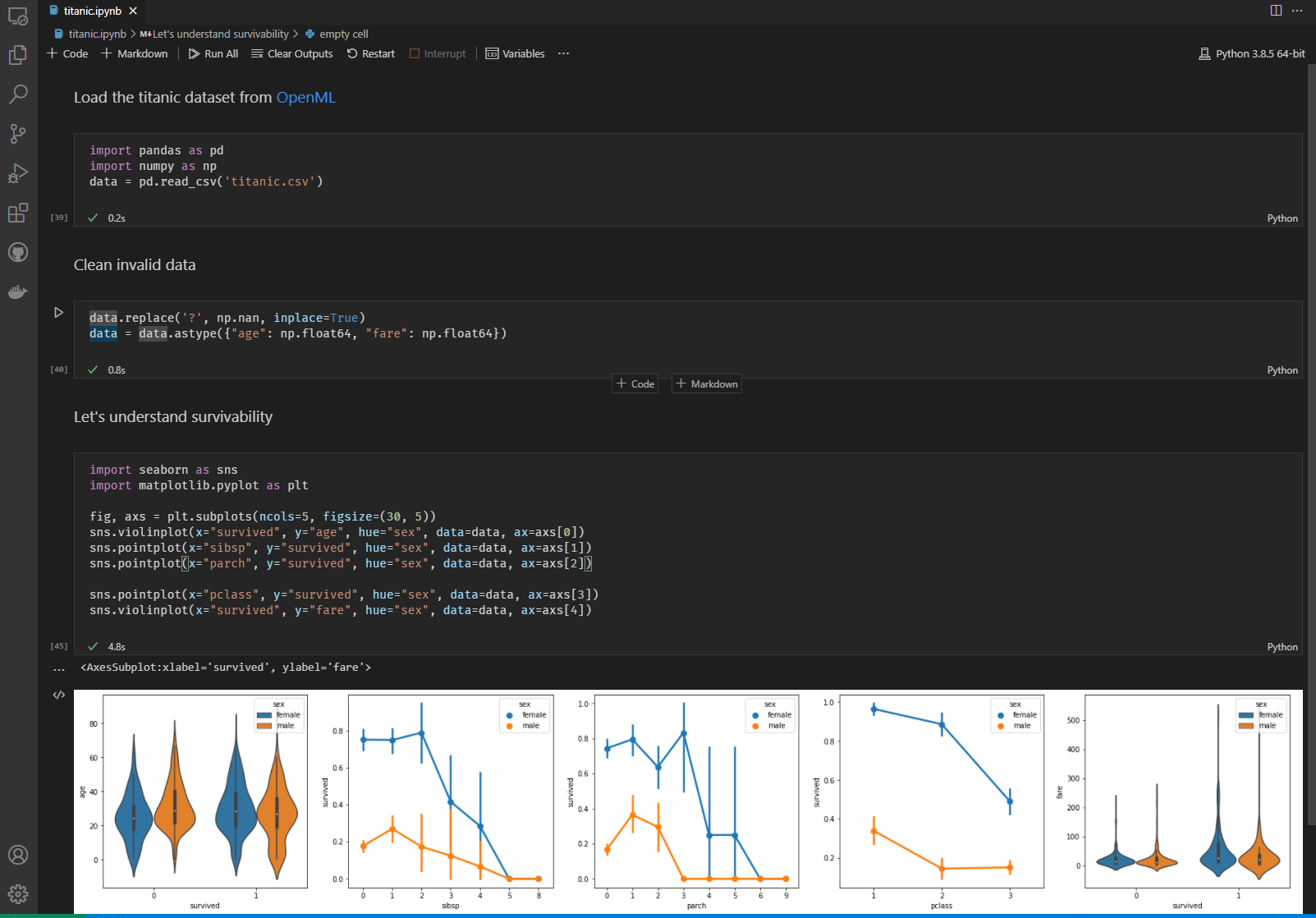 An image of a notebook that analyzes data from the Titanic shipwreck